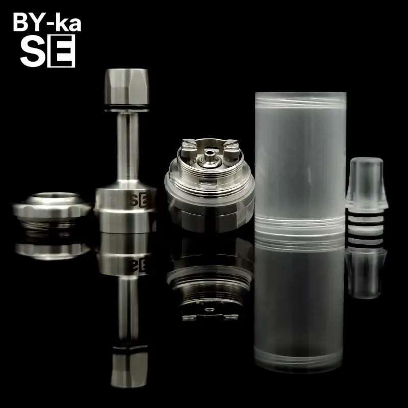 parti metalliche in acciaio inossidabile 304, uno dei tank in policarbonato (PC), drip tip in Delrin (POM), isolatori in PEEK e o-rings in NBR70