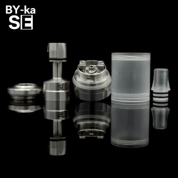 parti metalliche in acciaio inossidabile 304, uno dei tank in policarbonato (PC), drip tip in Delrin (POM), isolatori in PEEK e o-rings in NBR70